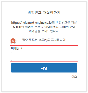 6. 비밀번호 재설정을 위해 이메일 주소를 입력합니다.