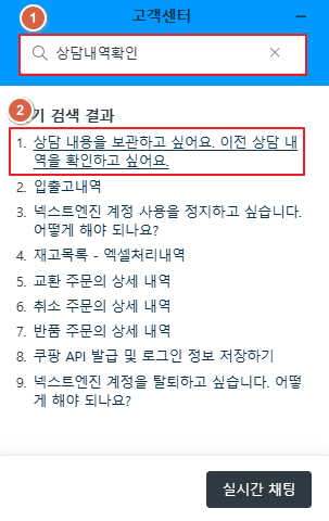 1. 고객센터연결 팝업 창에서 "상담내역확인" 으로 검색합니다.