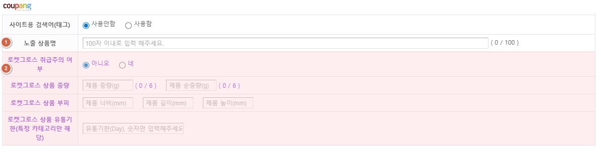 로켓그로스 상품을 판매할 경우 설정해야 하는 항목입니다.
