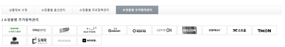 추가항목관리가 가능한 쇼핑몰은 넥스트엔진에 연동된 쇼핑몰에 한해서만 노출됩니다.