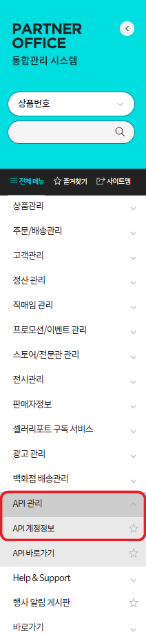 2. 업체 정보 관리 > API계정정보 클릭